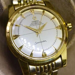 This great timepiece is waterproof and is a catch! All of our watches come with an official warranty card, presentation watch box, and other documents and tags for authenticity. The case and the bracelet are 18 kt yellow gold,hallmarked (see photos). The seamaster de ville was part of the omega catalog in the 1960s.